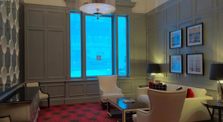 "The rooms are contemporary in style, with all the requisite comforts, including handsome marble bathrooms...The American Reserve restaurant is a fine example of upscale New American cooking " Full review