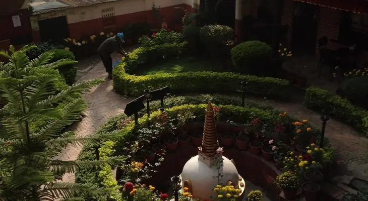 "A complex set back from the road, it has fresh modern rooms of varying size placed around a pleasant central stupa courtyard decorated with carved wood and Newari brick." Full review