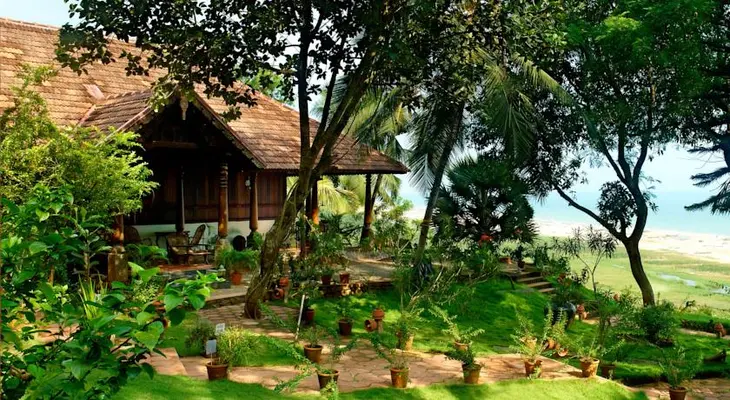 “A simple, colourful resort made up of thatched cottages looking out onto the famous Kovalam beach.”