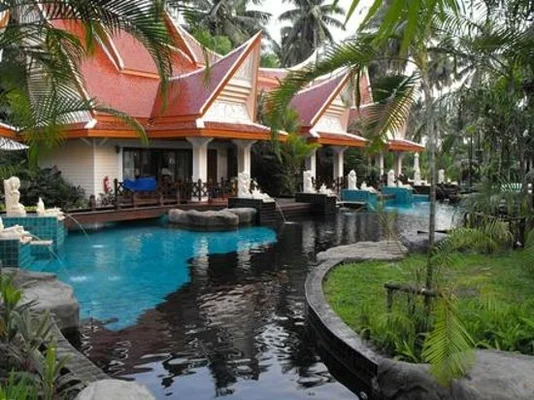 "Its spacious grounds are meticulously manicured, and the main pool is flanked on one side by a casual bar...rooms are set in high-peaked, Thai-style buildings with arching roofs." Full review