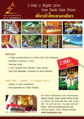 “Located right on the beach in Kantiang Bay, Baan Laanta Resort & Spa is a small, mid-range property with 15 bungalows in the south of Koh Lanta.”