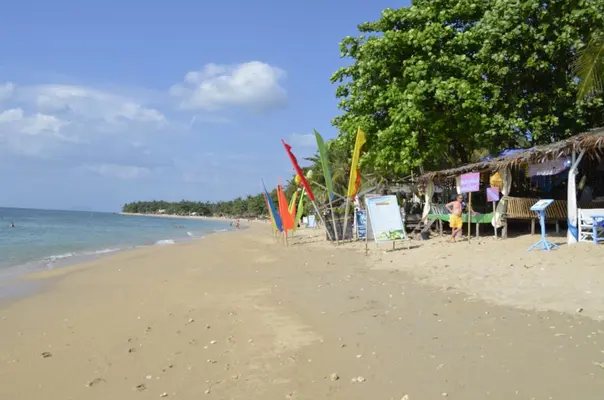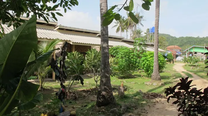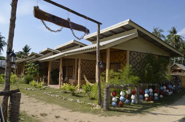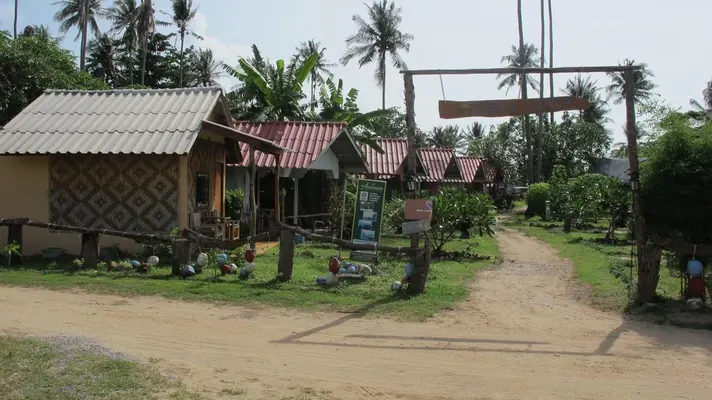 “A popular little set of neat, pastel-painted, tin-roofed concrete bungalows with woven bamboo flourishes lining a simple flowery path that spreads back behind a rustic blue-and-white-washed restaurant-bar.”