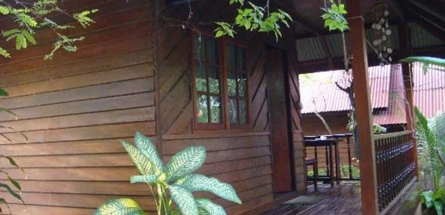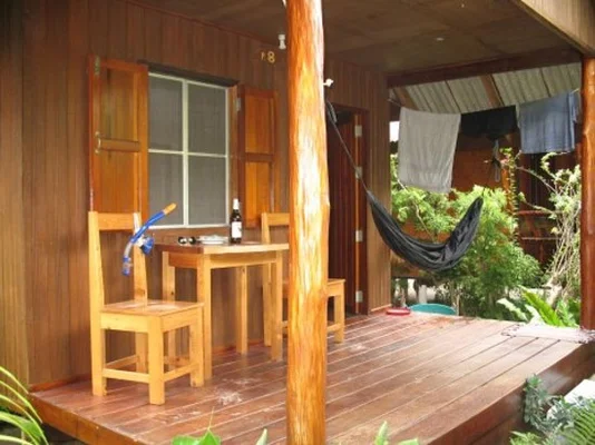 “These are the perfect beach bungalows, built entirely of wood with shuttered windows and hammocks slung on the decks.”
