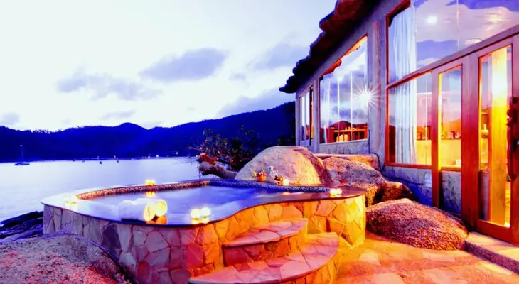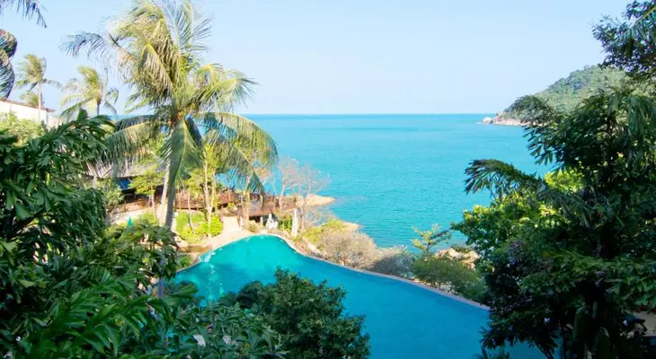"Panviman Resort is the most exclusive address on Ko Phangnan, set high on a hill above the beach which affords excellent sea views. The frequent hotel shuttles take guests to the beach."
