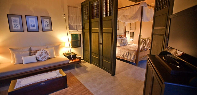 "The design of this luxury hotel was inspired by Chinese merchants’ houses in Thailand in the last century, which gives a pleasing retro feel to the rooms, most of which have outdoor bathrooms."