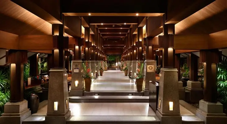 At dinner, guests may choose from a traditional Thai menu at Sala Thai, in its own building at the heart of the hotel and surrounded by flowing water.
