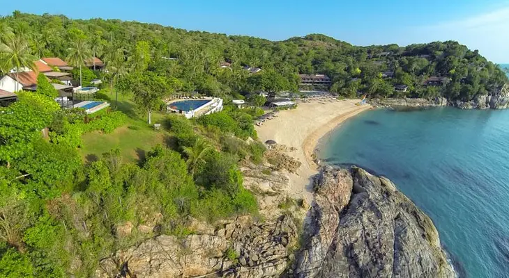 “Nestled in its own private and stunning cove, the Tongsai Bay Resort offers 83 chalets and villas that cascade down a luscious hillside to the beach and into the Gulf of Thailand.”
