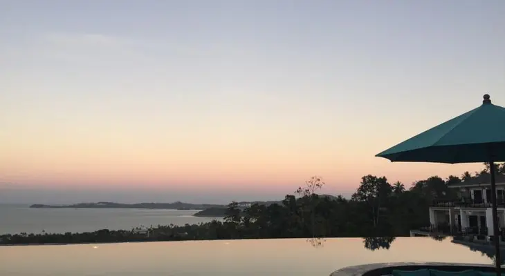“A luxury boutique perched on a hill overlooking Koh Samui's northern coast, the 74-room Mantra Samui Resort has stunning ocean views.”