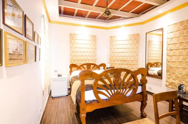 Eight perfectly pitched rooms are named for colours but also take subthemes, Bengali movies in 'Charcoal', Kumartuli goddesses in 'Vermilion'. — Lonely Planet