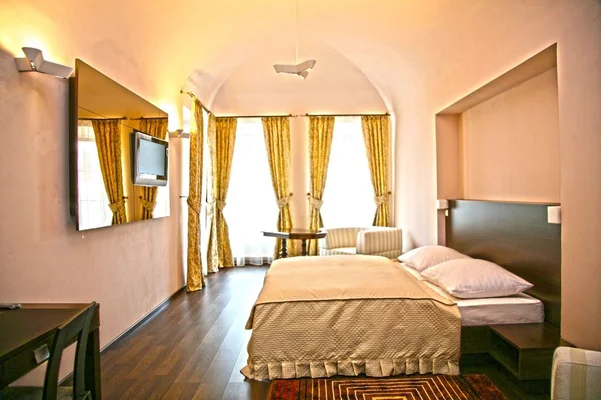 "Rooms at Zlatý Dukat have a classic, almost antique, style: high ceilings, occasional exposed brick or wooden beams, but modern fittings like flatscreen TVs and security boxes." Full review