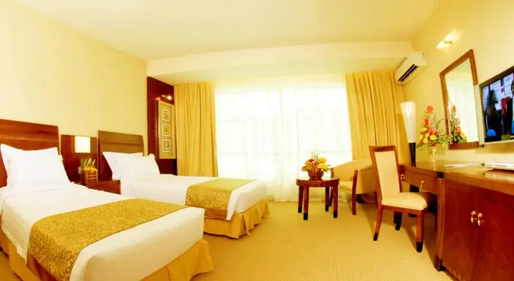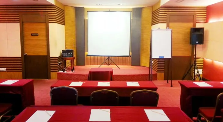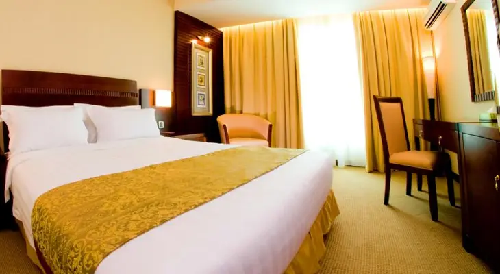 “Located in a mall, this 72-room hotel has decent rooms with contemporary furniture, safety deposit box and flatscreen TVs.”