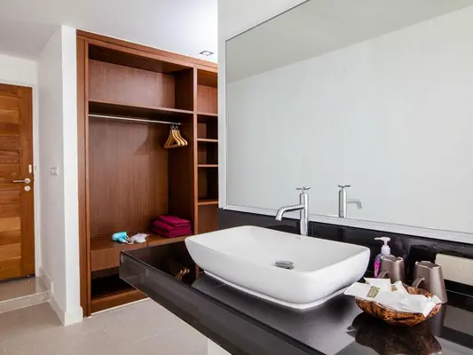 "The seafront villas here are nice and light with floor-to-ceiling windows, massive semi-open-air bathrooms, indoor/outdoor showers, colour feature walls, kettles, fridges and wooden sunloungers" Full review