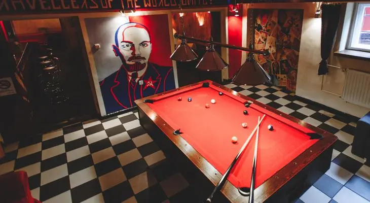 "This cheerful place has a cheeky communist theme with absurd paintings and statues mocking the imagery of the era." Full review