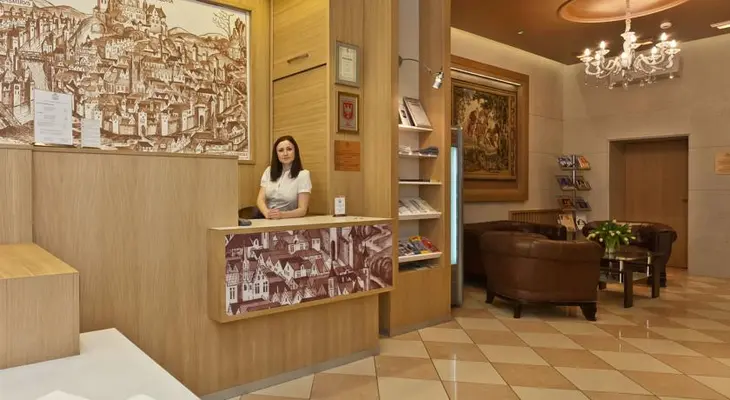 “Modern, but nevertheless impressive, stained-glass windows, most depicting the Kazimierz of long ago, dominate this hotel.”