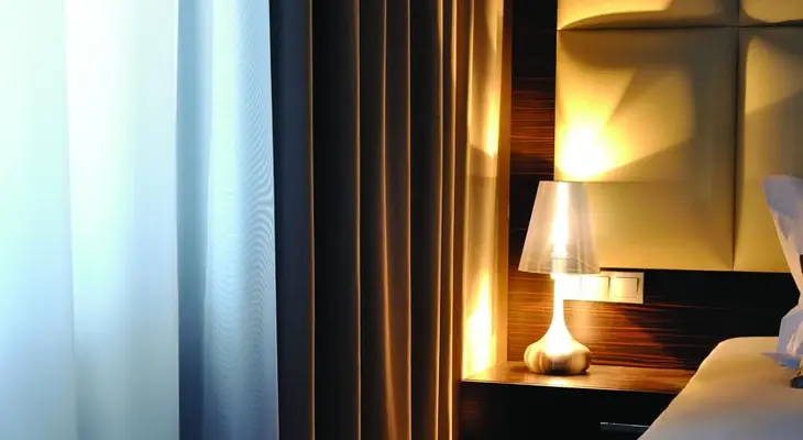 "Smart boutique hotel with minimalist lobby and chic styling."