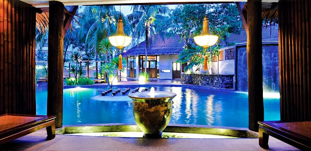 "Most of the accommodations ring a lovely lagoon. Some have kitchens, some have gardens, some have balconies that extend over the courtyard and Jacuzzis similarly open to the elements" Full review