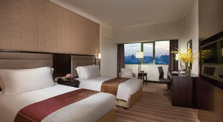 “Popular with business travelers, its quiet, leafy location northwest of the city center makes one forget it is only five minutes from the hustle-bustle of downtown.”