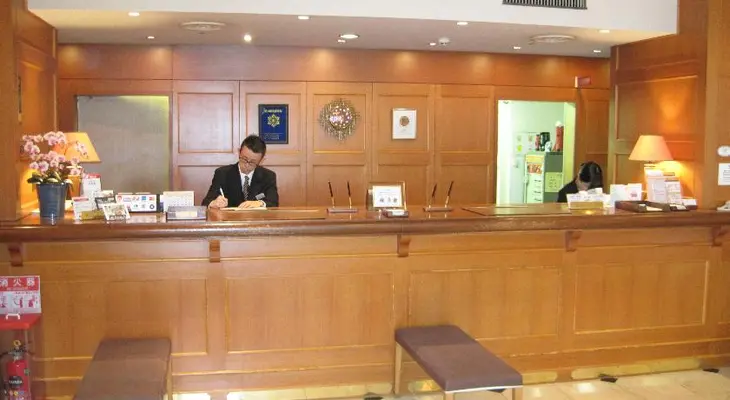 “This small hotel on Oike Dori was built some 30 years ago, but it achieves an even older ambience in its lobby with the clever use of antique-looking lighting and decor.”