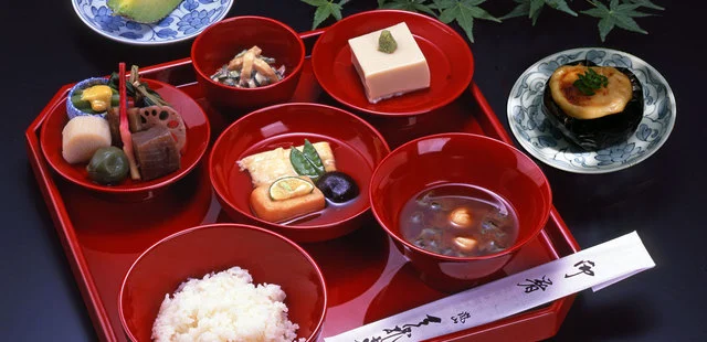 “The temple's restaurant serves vegetarian meals such as sesame tofu and soup made of dried gourds and sea kelp.”