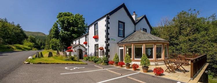 "Tucked away in a beautiful mountainous location, this former 17th-century coaching inn has delightful, modern rooms and a fine restaurant that supports quality local suppliers."