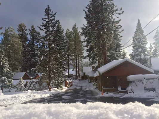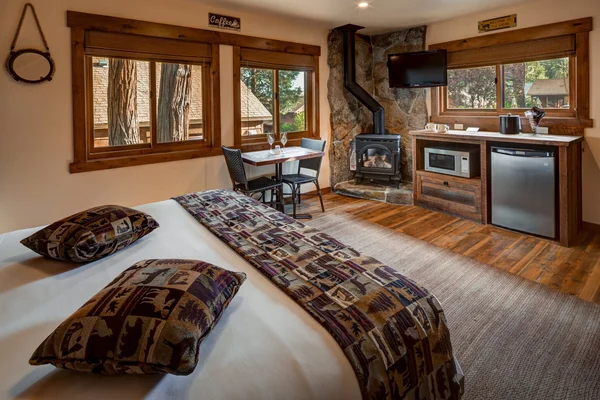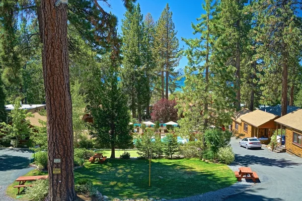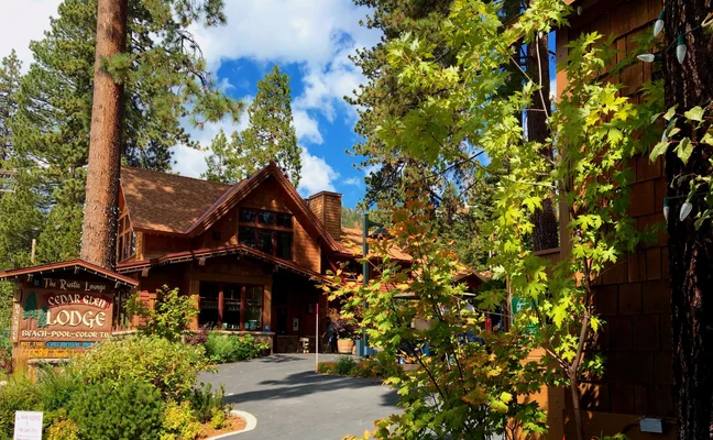 “Sitting in a small forest area across the street from Lake Tahoe, the Cedar Glen Lodge is a throwback to a simpler time with its motor-lodge design and woodsy cabins.”