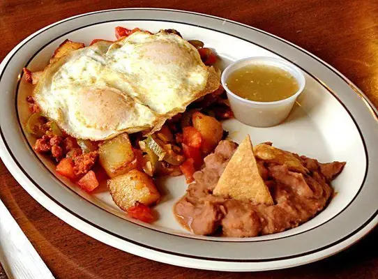 “Across from the Amtrak station, this snug locals’ favorite dishes up breakfasts big enough to feed a lumberjack.”