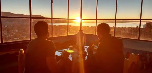 Panoramic views of Lake Titicaca and its surroundings can be viewed from the endless windows that line the restaurant atop of this Spanish-colonial hotel, and some of the rooms share the view. — Fodor's