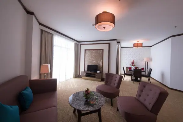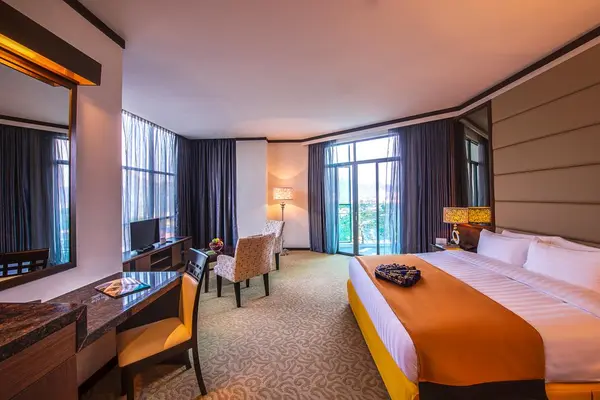 “The three-and-a-half-pearl Adya Hotel Langkawi is a contemporary, Islamic hotel located in the heart of Kuah town and overlooking the Strait Of Malacca.”