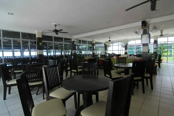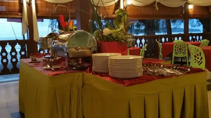 “Tall trees and A-frame bungalows give this beachfront place a distinct campground vibe.”