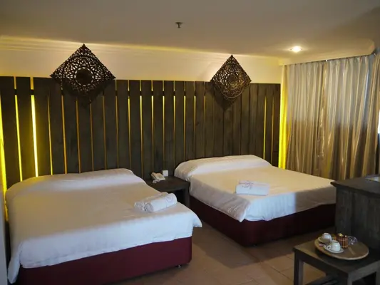 “This hotel's eagle-themed exterior is a short walk from the jetty. Promotional rates are typically half of those listed here, making it one of the few budget/midrange places in Kuah. Our...”