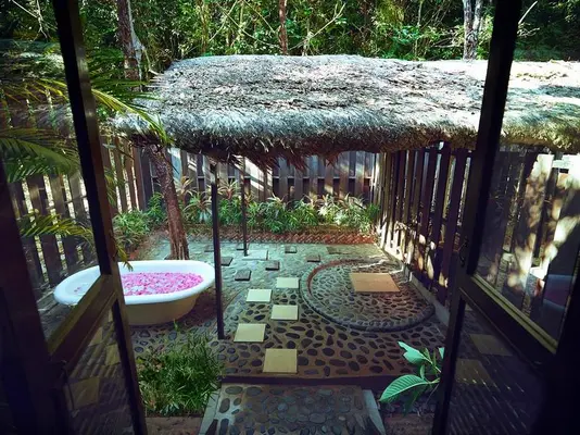 "Exclusive 390-acre private island escape with its own beach and spa overlooking the sea." Full review