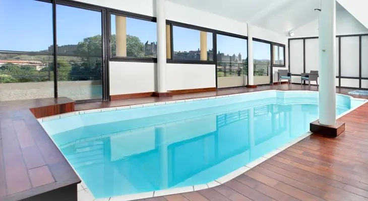 “With a third-floor indoor pool and a fourth-floor restaurant, both with spectacular views of Carcassonne's medieval citadel, this modern four-star hotel offers a practical and comfortable base.”