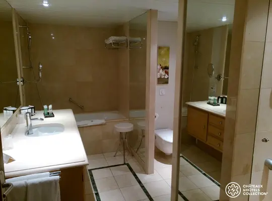 "Although the building is blocky and modern, the huge, breezy rooms here have elegant upholstered furniture, terracotta floors, and table lamps." Full review