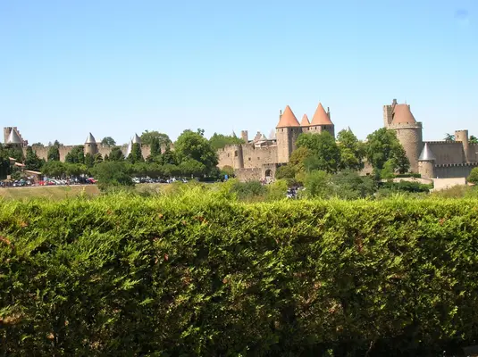 "Splendidly restored medieval palace-hotel set within the ramparts of an impressive hilltop fortress in Carcassonne overlooking the Aude River, three hours west of Avignon." Full review