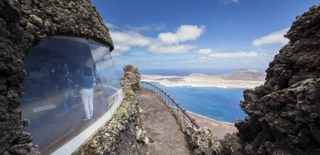 “Designed by César Manrique, this lookout at the northerly tip of a hairpin bend in the LZ-202 road lets you see the islet of La Graciosa from an altitude of 1550 feet.”