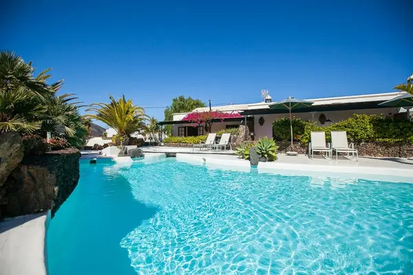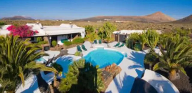 "Palm trees rustle in the breeze, charred volcanic vineyards stretch out to stark hills on the horizon and the aquamarine pool blazes out against the whitewashed architecture at this super-stylish bolthole, hidden in the La Geria wine region"