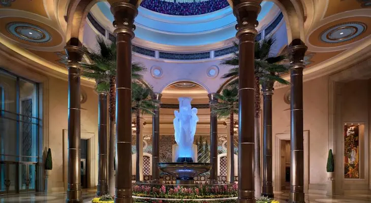 “The Palazzo’s elegance is understated, with spritzing fountains and marble statues in the high-ceilinged lobby.”