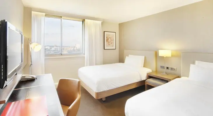 “A big and unremarkable-looking Hilton just south of the train station is surprisingly more pleasant inside than it looks from the outside. Rooms are big, bland and very comfortable.”