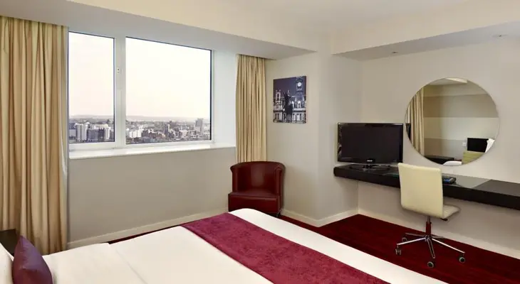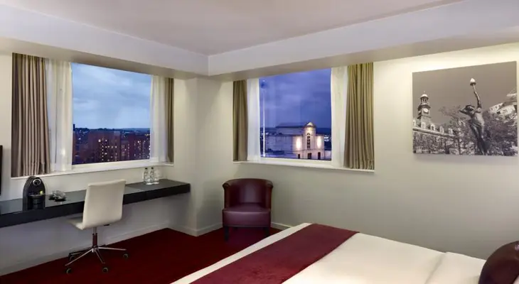 “The Park Plaza – a slick modern high-rise hotel just a two-minute walk from Leeds train station – appeals to business travellers, sightseers and families alike with its airy contemporary guestrooms.”
