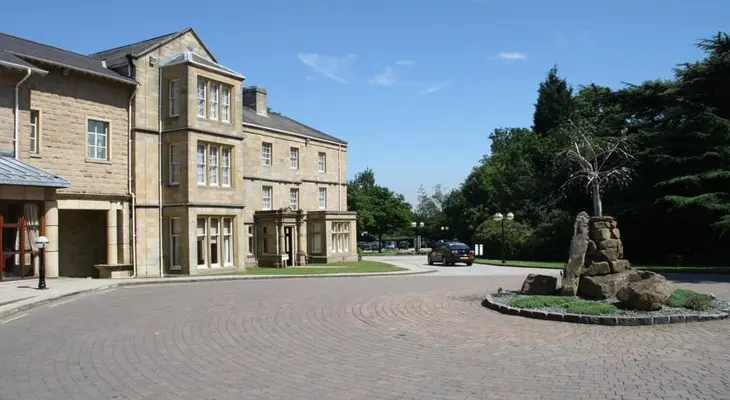 “This hotel and venue occupies a 17th-century manor house and more modern buildings, set in extensive wooded grounds.”