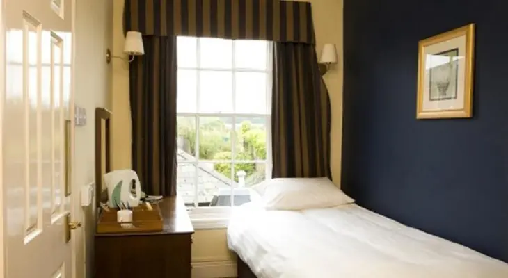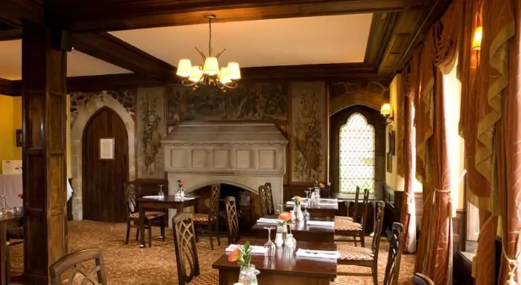 "Stone fireplaces, oak paneling, and stained-glass windows evoke its rich historical associations. Bedrooms have been handsomely restored and are comfortable, with modern conveniences." Full review