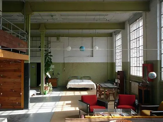 “Two über-cool apartments for up to six people in former factory buildings of the Spinnerei arts complex.”