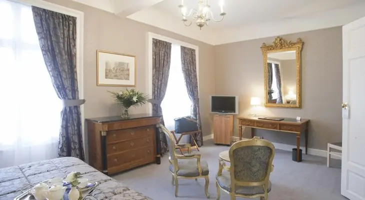 "Grand Hotel Bellevue has a pitch-perfect location overlooking the handsome Flemish buildings of Grand Place...rooms feature period Flemish décor mixed with bold contemporary colour notes."