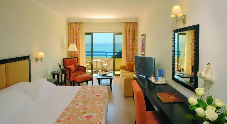 “Though the Elias Beach Hotel has the facilities of an upscale resort, the decor and atmosphere are decidedly mid-range.”