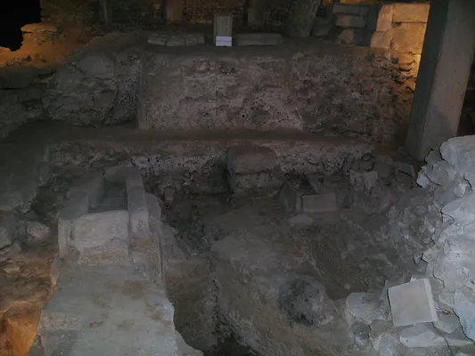 Two buildings, one Romanesque and the other 13C Gothic, predate the current building whose construction began in 1364 and was pursued in the 15C and 16C. — Michelin Guide