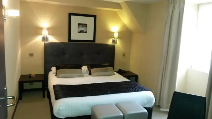 “A venerable wisteria-fronted hotel in the centre, with comfy but bland rooms.”