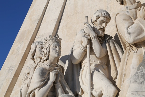 Represents the prow of a ship with the prince pointing the way to a large group of Portuguese heroes. — Michelin Guide