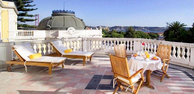 "Occupying a marvellously restored 19th-century palace with views of the Tagus, this grand hotel has extensions framing a garden. It is located between central Lisbon and Belém."