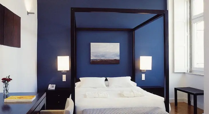 “On a cobbled street of grand but decaying buildings, this hotel sits between Bairro Alto and the waterfront, near its tiny, less evocative sibling Janelas Verdes.”