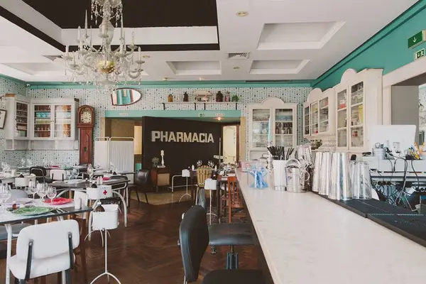 "Part of the Pharmaceutical Society and Museum, this traditional building on lawns facing the Tejo is a terrific spot for a quirky café- restaurant decked out with retro pharmacy fittings."